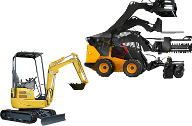 Mini excavators, skid steer loaders, lawn mowers and other compact equipment for farm, landscaping and construction work.